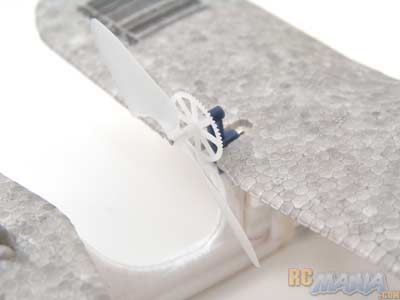 It shocked me that such a tiny plane could be made with full-function wireless remote control! The ability to fly a plane in a normal-sized room is something I've been looking for forever. How did they manage it with the Aerosoar? When you first take it out of the box, it's immediately obvious. It's a really, really lightweight plane with minimal parts. The wing & stabilizers are made from a very thin, soft, flexible foam that actually feels very flimsy. I wouldn't want to crash too hard or hit a wing against something hard. The motor os truly tiny and connects to the thin propeller with two super-thin plastic gears.